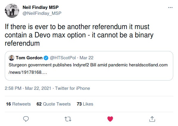 Niel Findlay, Labour list MSP for Lothian, recently suggested that Devo Max be added to any future independence referendum: